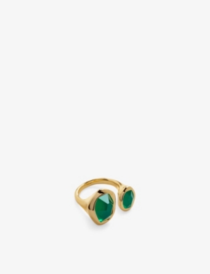 Siren Tonal 18ct gold-plated sterling silver, rock crystal, chrysoprase, green onyx and amazonite ring- Price:$109.00