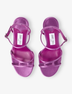 JIMMY CHOO: Aziz 95 Crystal-Embellished Satin Heeled SandalsJIMMY CHOO: Aziz 95 Crystal-Embellished Satin Heeled Sandals