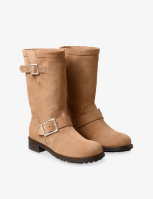 JIMMY CHOO: Biker Mid Velvet-Suede BootsJIMMY CHOO: Biker Mid Velvet-Suede Boots