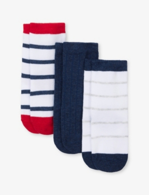 Spot and stripe-print organic-cotton socks pack of three 0-6 years- Price:$11.00