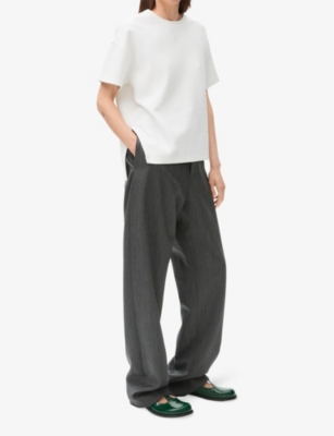 From raw-hem jeans and checked shirts to pleated trousers and graphic-print tees, Loewe's clothing covers a lot of ground. Expect fashion-forward shell coats alongside classic cropped bombers, and sweaters in cashmere or mohair blends. Athleisure trainers, sleek belts and sturdy combat boots are all crafted from the the powerhouse's signature smooth calf and lambskin leather. Loewe also uses its iconic material for wallets and shoulder bags - or you can opt for a basket-style tote woven from raffia. Many pieces feature the label's distinctive anagram branding, either embossed, embroidered or printed.
