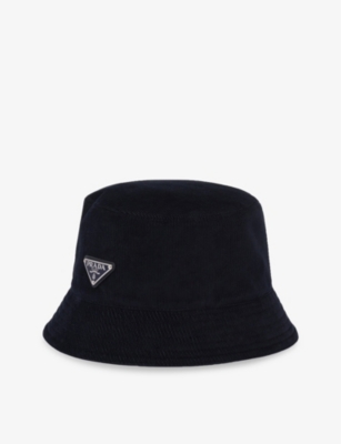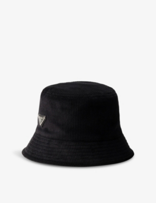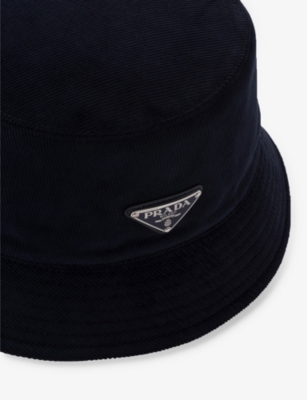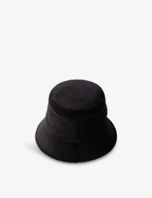 Brand-plaque wide-brim corduroy bucket hat