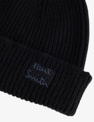 Embroidered-Logo Ribbed Cashmere-Wool Beanie Hat