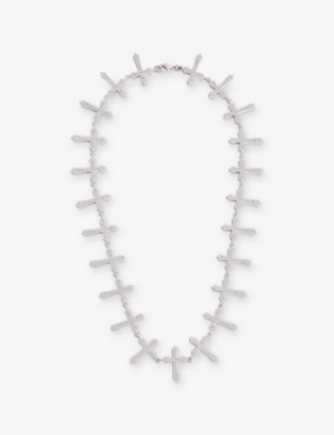 Cross Tennis 18ct White Gold-Plated Stainless-Steel And Diamond Stone Necklace- Price:$490.00