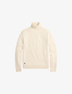 POLO RALPH LAUREN: Roll-Neck Logo-Embroidered Wool and Cotton-Blend JumperPOLO RALPH LAUREN: Roll-Neck Logo-Embroidered Wool and Cotton-Blend Jumper