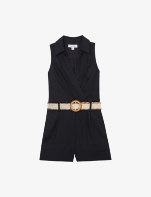 Bay Halter-Neck Cut-Out Linen Playsuit