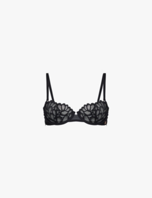Romantic corded unlined balconette stretch-lace bra