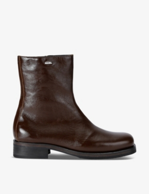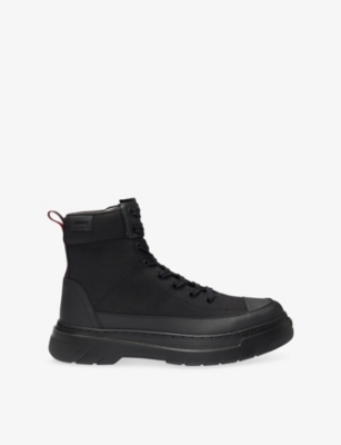 Jet black, neutrals and bursts of colour are ever-present throughout our men's premium boots range and work with standout details such as distressed effects, graffiti motifs and quilted textures. Classic and versatile, our leather versions adopt traditional ankle silhouettes; a dapper addition to office ensembles and formal attire. Searching for an attention-commanding pair? Discover statement designs such as platform, combat and western models with croc-embossed finishes, contrast soles and brogue detailing.Â