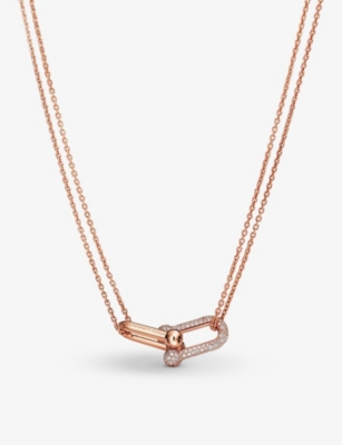 Tiffany HardWear 18ct rose-gold and 0.74ct pavé diamonds double-link pendant necklace- Price:$15,015.00