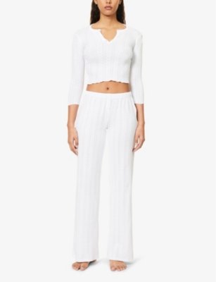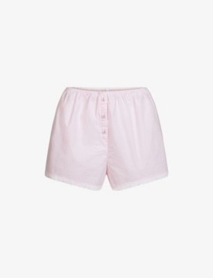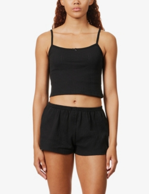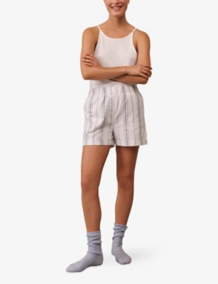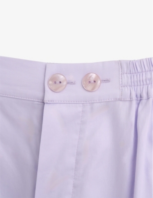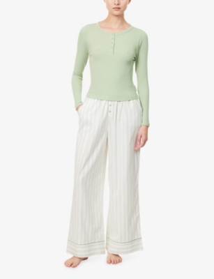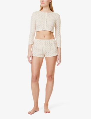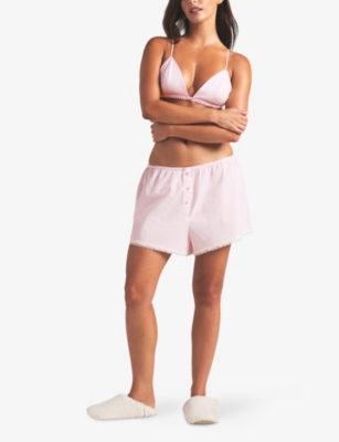 Relaxed shapes take centre stage in our women's cotton pyjama bottoms range. Discover casual fits in an array of eye-catching prints: think lavish florals, pastel stripes and botanical patterns. For a versatile lounge-to-sleep style, choose from a selection of fitted leggings. They're butter-soft against the skin and an ideal option for those indulgent duvet days. Select leggings in ribbed knits with high waists to hug your figure. Sleep shorts offer warm-weather alternatives in soft jersey cotton or satin - look out for garments finished with delicate lace trims.Â