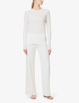 Want to add a little decadence to your sleepwear? Look no further. Our silk pyjama bottoms are home to shimmering hues of sea greens, powder pinks and dove greys. Their textures are designed to regulate your body temperature, so you can enjoy a restful sleep in every season. Add cosy design to your nightwear with some of our women's cuffed pyjama bottoms. Their tapered styles will hug your ankles to keep you warm while you lounge.