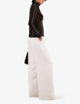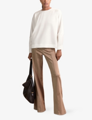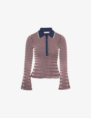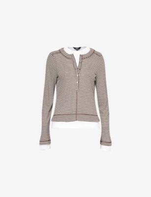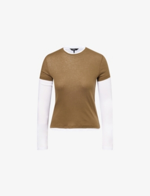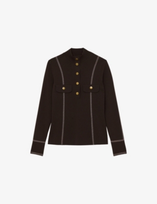 Our selection of women's long-sleeve designer tops brings statement shapes that will delight the fashion-forward. Make an entrance in a shirt with exaggerated puff sleeves or a high frilled neckline. Cut-out panels, asymmetrical necklines and detachable sleeves will excite those who enjoy dressing adventurously. There are plenty of textured fabrics to explore throughout the range, from sparkling metallic constructions to dramatic semi-sheer mesh pieces.