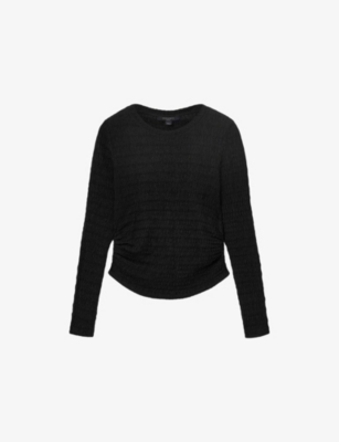 Across our range of ladies' long-sleeve tops, encounter pieces sure to enliven a casual ensemble. Figure-framing bodysuits provide a flattering silhouette, while oversized iterations offer draped shapes for relaxed styling. For smarter days, choose a structured shirt or softly woven blouse. Expect delicate detailing, from lace collars to curved hems and gathered pleats to scalloped trims. Vibrant patterns appear throughout, with classic designs including vertical stripes and ditsy floral prints. Looking for something bolder? Opt for a top decorated with an all-over graphic print. We're talking sprays of graffiti, newspaper cuttings and patchwork collages.Â