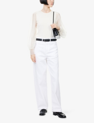 Sleek items in solid colours offer versatility, while voluminous pieces bring drama to everyday outfits. Think flowing flared silhouettes, gathered cocoon shapes, oversized collars and blouson sleeves. Looking for romantic detailing? Select a top with embroidered florals, lace panels or scalloped trims. Soft fabrics are the mainstay of the range - we're talking breathable cotton, silk and lightweight linen, to name a few. Look out for our green Project Earth stamp scattered across the collection too, highlighting the most planet-friendly picks in our range of ladies' casual blouses.