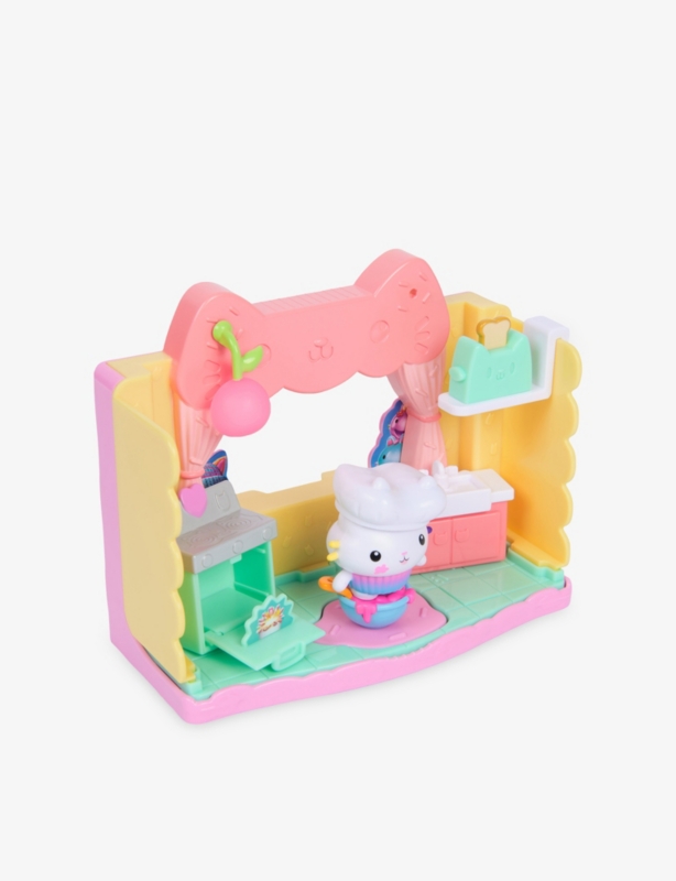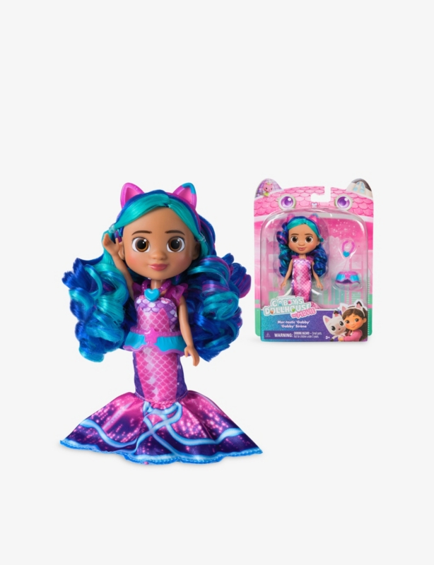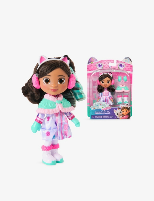 - Gabby's Dollhouse themed, soft-click technology, boxed