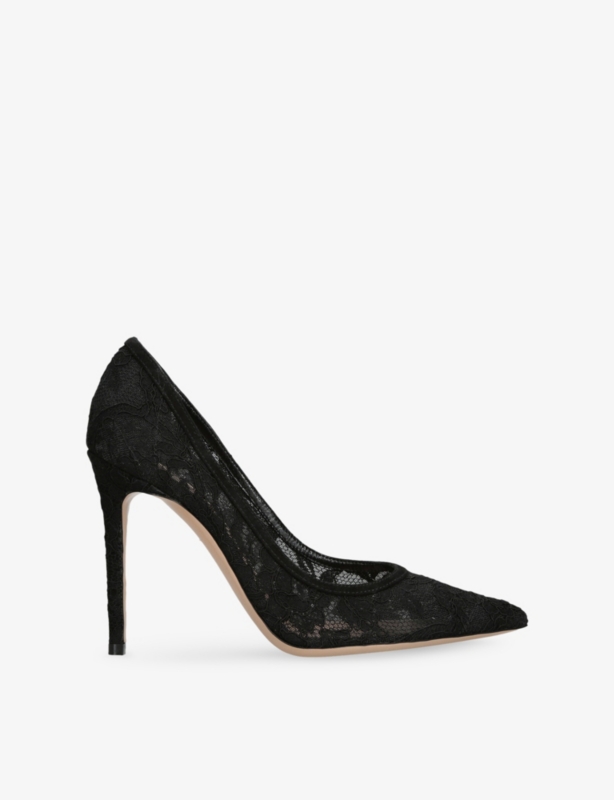 - Open pointed toe, PVC front strap, backless silhouette, stiletto heel