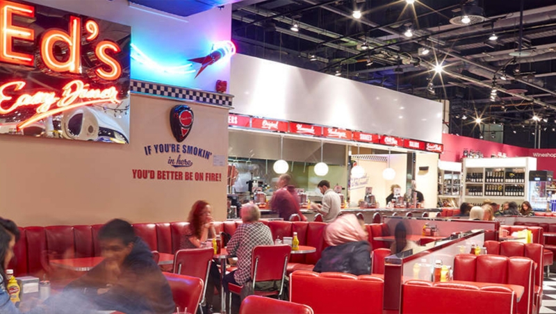 This all-singing, all-dancing, all-American diner provides a classic take on signature American dishes, from burgers and shakes to chilli-dogs and root beer.