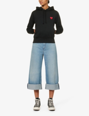 Demonstrating the brand's minimalist Japanese influence, our Comme des Garçons hoodie women's range is full of monochromes in neutrals and pastels. Creative Director Rei Kawakubo creates each design with precise attention to detail, adding blend-in front zips, straight hems and hidden stitching. Carefully chosen contrasting details stand out all the more because of the label's cohesive attitude towards colour. Kawakubo finishes the hoodies with the brand's playful heart motif in appliqué or embroidery. Opt for a discreet logo on the chest or an oversized heart face print on the back of your sweater.