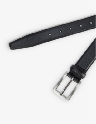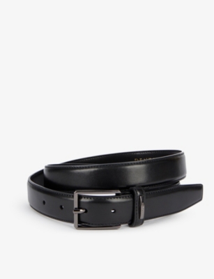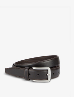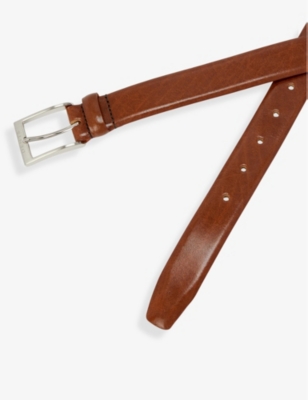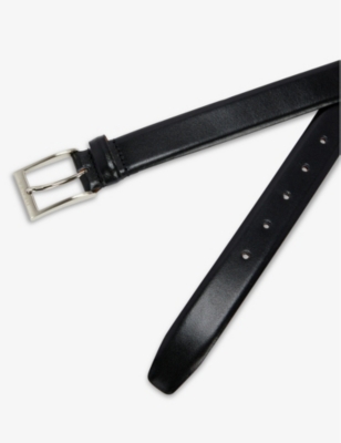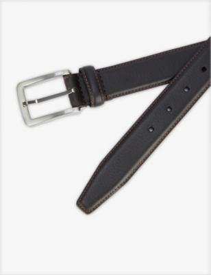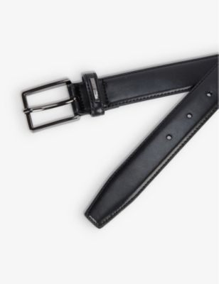 Logo-engraved leather belt