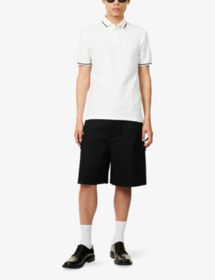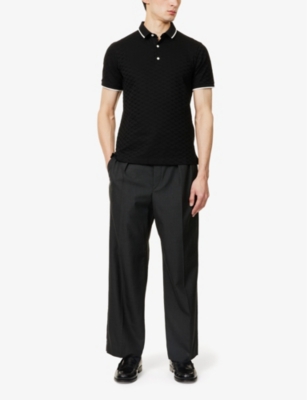 Enhance your wardrobe with our range of Armani men's tops. Our selection of classic and contemporary men's polo shirts, T-shirts, sweatshirts and hoodies is designed to transition seamlessly throughout your day for superior style that's easy to wear. You'll find eye-catching graphic prints as well as the iconic eagle logo across the casual wear collection.