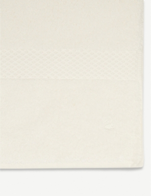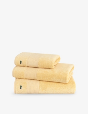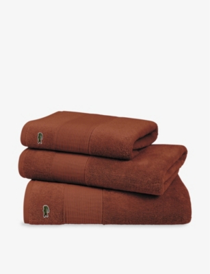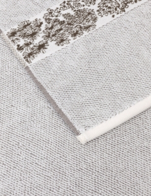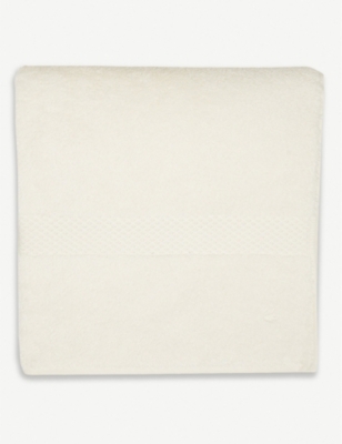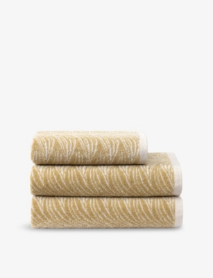 Brighten up bath times with a fluffy stack of designer bath sheets, hand towels and face cloths. Browse our collection and you'll see a variety of indulgent fabrics and finishes. Think Egyptian cotton, Terry modal, waffle weave and super-absorbent Hydrocotton. Look out for our green Project Earth for Nature banner to identify items made with environmentally-preferred materials and processes. Want your bathroom to resemble a five-star hotel amenity? Opt for classic ice white, subtly embossed or embroidered with the logo of a trusted premium brand. There's an array of options for colour and print lovers too, whether you're partial to natural hues, jewel tones or jaunty stripes.Â