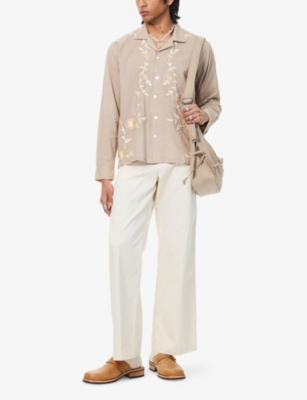 Floral-Embroidered Classic-Collar Cotton Shirt