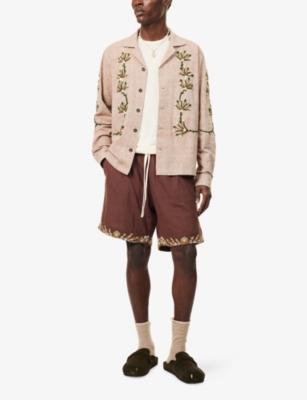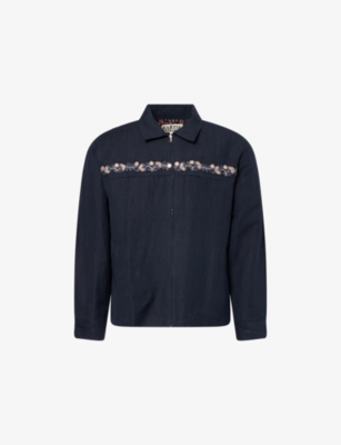 Embroidered-Mirrors Relaxed-Fit Cotton-Linen Jacket