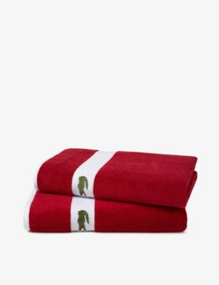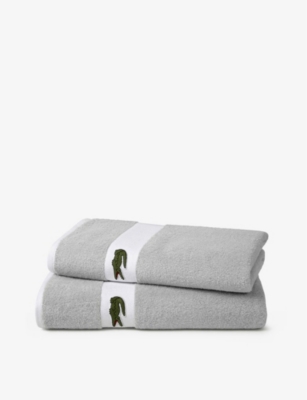 Bring Lacoste's easy glamour to your home with our selection of towels, each encapsulating the sporty aesthetic that earned the brand its stripes (so to speak). Whether you're looking for guest sets or an extra-large bath sheet to wrap yourself in, you'll find plenty of options in our range, all neatly embroidered with the label's instantly recognisable crocodile logo.