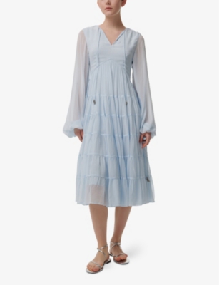 Dropped-shoulder frill-hem pleated woven maxi dress
