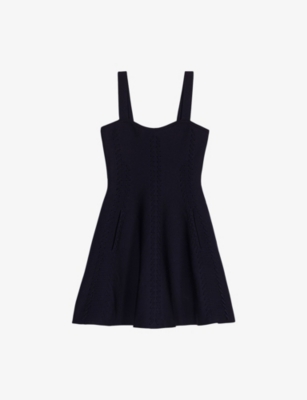 Round-Neck Flared-Skirt Stretch-Knit Mini Dress- Discount price:$400.00