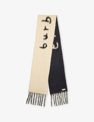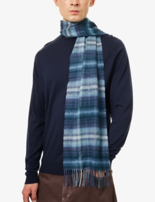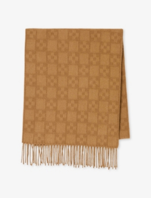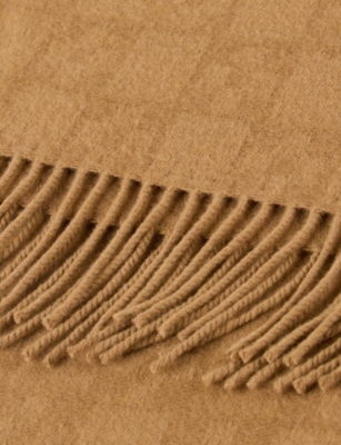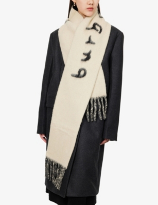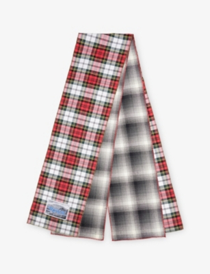 Explore scarves adorned with recognisable brand motifs as well as bespoke printed scarves that take on elaborate illustrations. Stripes and oversized grids are popular additions, as are patterns inspired by heritage. What's a collection of scarves without a tartan, houndstooth or check? Shop ageless colour palettes of grey, black and navy blue, or brighter hues that will bring a playful highlight to your outfit. Think rainbow stripes if you really want to push the boat out. Add a little texture in the form of an irregular knit, a fluffy finish, prominent ribbing or long tassels. Â