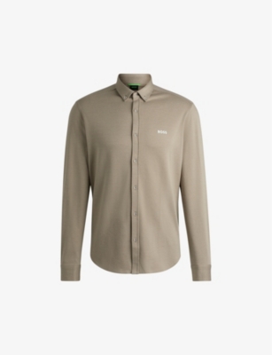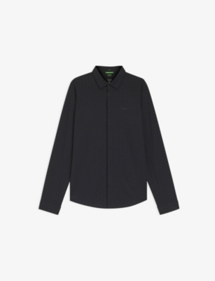 Anti-wrinkle text-print regular-fit cotton shirt- Discount price:$144.00