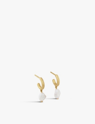 Keshi 18ct yellow gold-plated vermeil sterling silver and pearl hoop earrings- Price:$220.00
