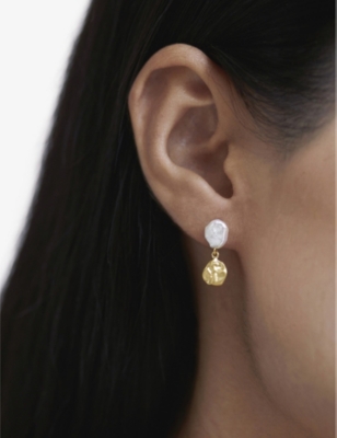 Circular drop 18ct yellow gold-plated vermeil sterling-silver and pearl stud drop earrings- Price:$210.00