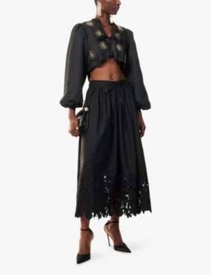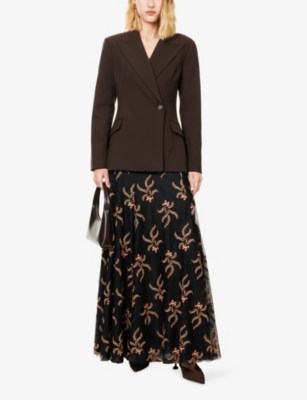 Our assortment of maxi skirts for women is brimming with carefully crafted pieces. Ruffled trims in lavish florals offer an ideal warm-weather print, while skirts in lightweight cotton blends provide breathable options. Introduce bold shapes to your silhouette by selecting pieces with asymmetric hems and wide-flared cuts. At the weekend, pair your maxi skirt with raffia sandals and tortoiseshell sunglasses - ideal for sunshine-filled afternoons. Play with texture by teaming a smooth silk maxi with a woollen jumper or a butter-soft mohair cardigan.Â