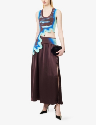 Searching for snug skirt options? You'll find a selection of designer maxi skirts in ribbed knit textures, as well as a mix of wool and cashmere blends, for cosy layering in colder climes. Pair with knee-high boots for a vintage-inspired ensemble or dress down with fresh white trainers. For eveningwear, take your pick of maxi skirts with alluring details: think exposed self-tie fastenings, side splits at the hem and waistbands with cut-out panels to sit on the hips.
