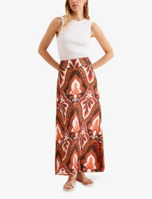 Tile-Print High-Waist Woven Maxi Skirt- Discount price:$63.00