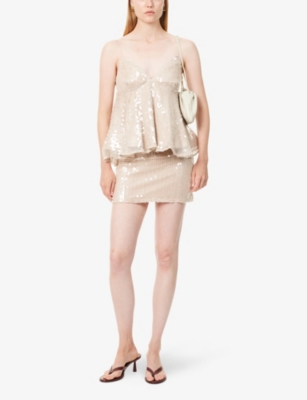 Floral-pattern sequin woven midi skirt- Discount price:$116.00