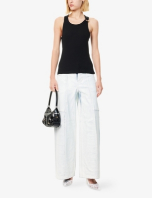 In our collection of women's designer T-shirts you can expect to find big branding and iconic imagery. Choose from long or short sleeves and dress them up or down. You'll also notice ribbed-cottons and stretch-jersey materials chosen for their comfort and fit. Pair a boyfriend-style T-shirt with a pair of shorts and some sliders or trainers for a relaxed daytime look or trip to the gym. Dressing for a night out? A cropped style with a high-waisted skirt or trousers is an ideal smart-casual ensemble. Wear this piece with ankle boots, heels or high-tops.