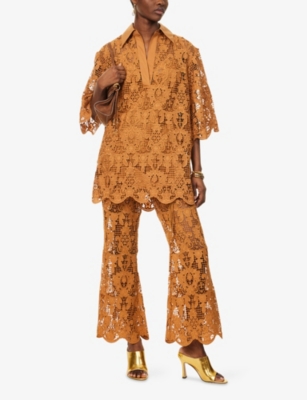 Our selection of leg-lengthening bootcut trousers for women includes both high-waisted options as well as cropped pieces to suit all body shapes as well as climes. Artfully placed cut-outs will look just right at a music festival or sun-drenched picnic, while eye-catching prints and colour-blocked fabrics promise to spice up even the simplest of weekday ensembles.Â