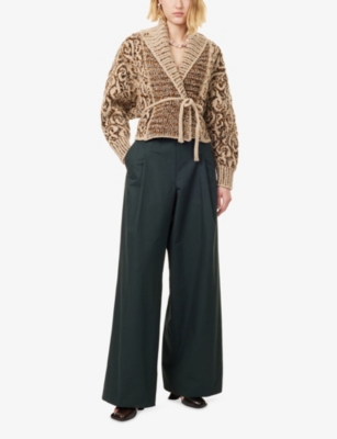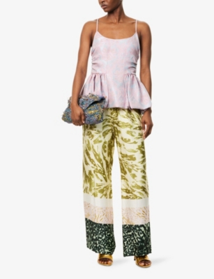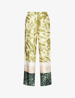 Abstract-Print Wide-Leg Woven Trousers