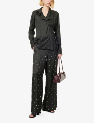 Embellished Wide-Leg Woven Trousers