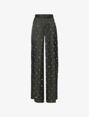 Sequinned Wide-Leg Stretch-Woven Trousers