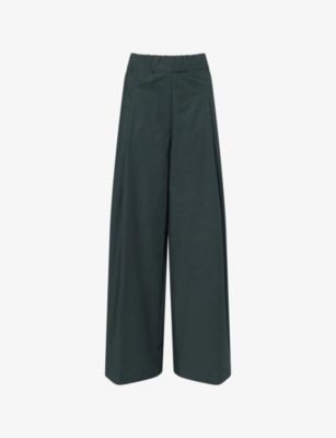 Drawstring Wide-Leg Cotton-Poplin Trousers