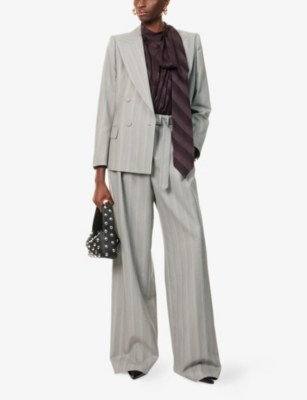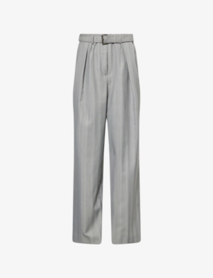 Belted Striped Wool-Blend Trousers