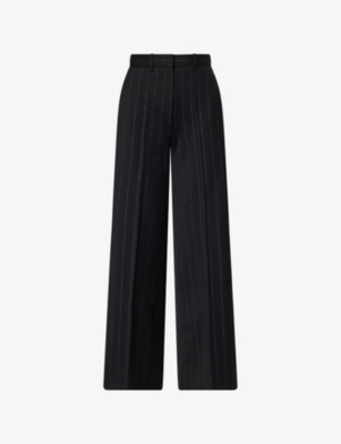 Metallic Pinstripe Straight-Leg Woven Trousers