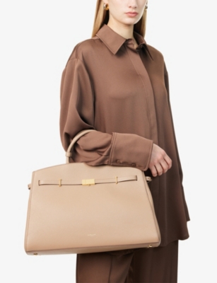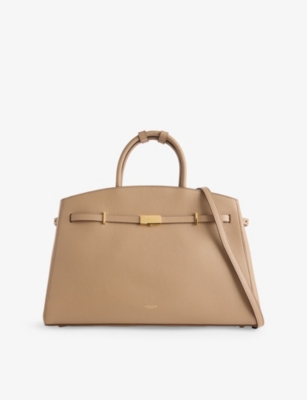 Whether you're swinging it at your side in a devil-may-care fashion or enjoying the convenience of an easy grip for stowing it on a table or under your desk, you'll find what you're looking for in our collection of leather top-handle bags. These deliciously varied options range from sculpturally structured shapes to soft and supple totes. For a strong impact that will radiate against dark clothing, choose from bright colours like lemon yellow or shocking turquoise. Restrained and traditional hues from warm chestnut to shiny black patent have a versatile and long-lasting charm that will take you from boardroom to party.