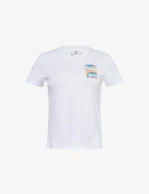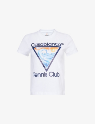 We love Casablanca clothing for its refreshing take on sports luxe. Explore whimsical tees adorned with pastel sketches of rackets and oranges - their brilliant white cotton invites wandering thoughts of long games of tennis followed by an icy drink. Throughout the collection, you'll find vibrant sky blues that will make you dream of sunny days. You'll also spot terracotta hints, as pieces point to the hues of the warm soils in North Africa.Â
