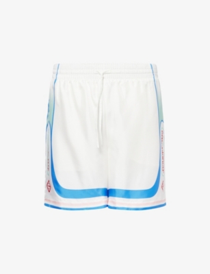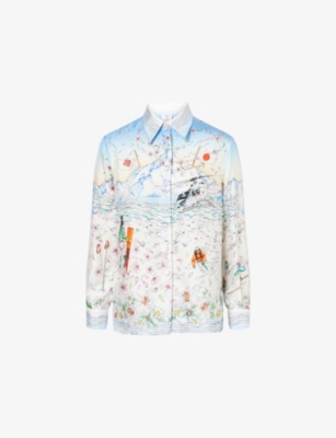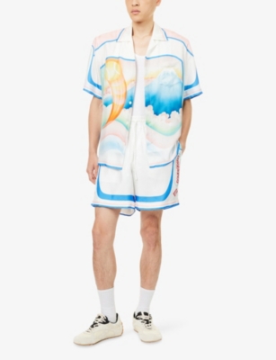 Printed sports dresses will work on and off the court, scoop-necked swimsuits can summon the mood for a dip and easy coverups like cropped cardigans are far from dull when they come in bold monogram patterns. Peruse Casablanca fashion accessories, where silky headbands festooned with dynamic logo prints sit alongside monogrammed tights with intricate detailing to enhance your wardrobe. For a vivid accompaniment that will also offer protection from the sun, why not pop on a graphic bucket hat or embroidered cap?