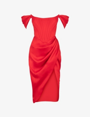 Alessandra Damask-Pattern Satin-Jacquard Midi Dress